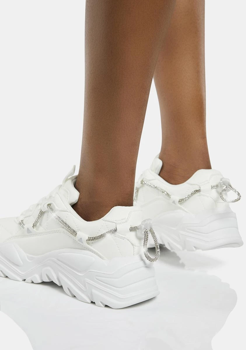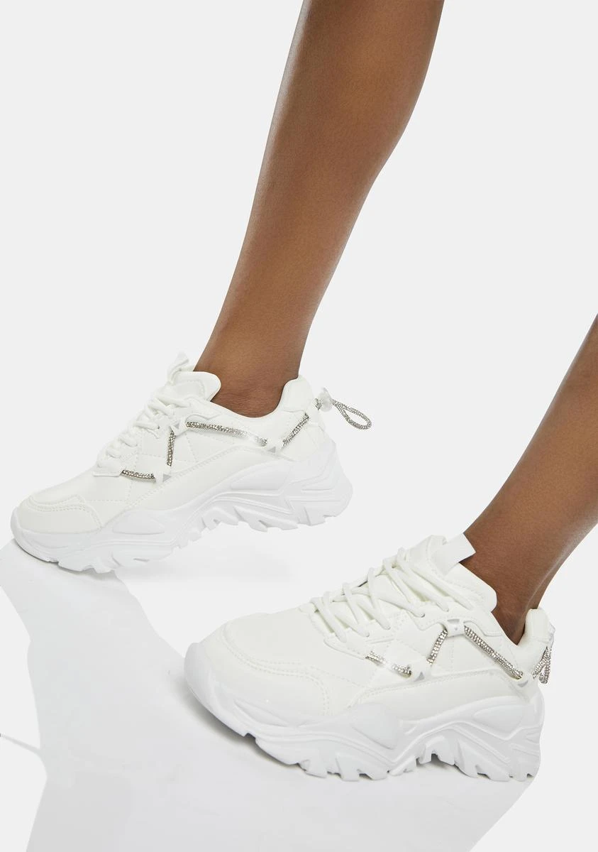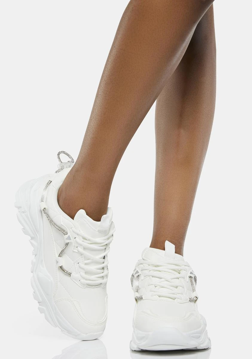 you’ll find me if I want you to. These sneakers come with textured platform soles, stitching details, lace up closures, and a rhinestone strap detail.