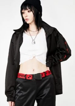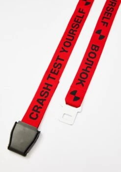 cuz youâre a dangerous gal. Send a warning in this dope AF canvas belt that has text graphics and a seatbelt buckle closure.