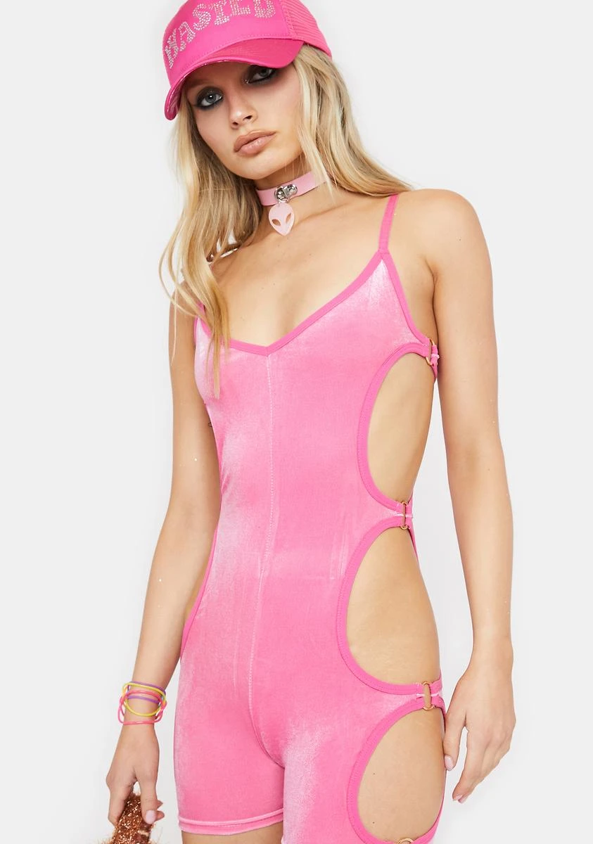 cuz the category is body! This sexy velour romper has side cutouts with O-ring hardware, a low V-neckline, and adjustable shoulder straps.