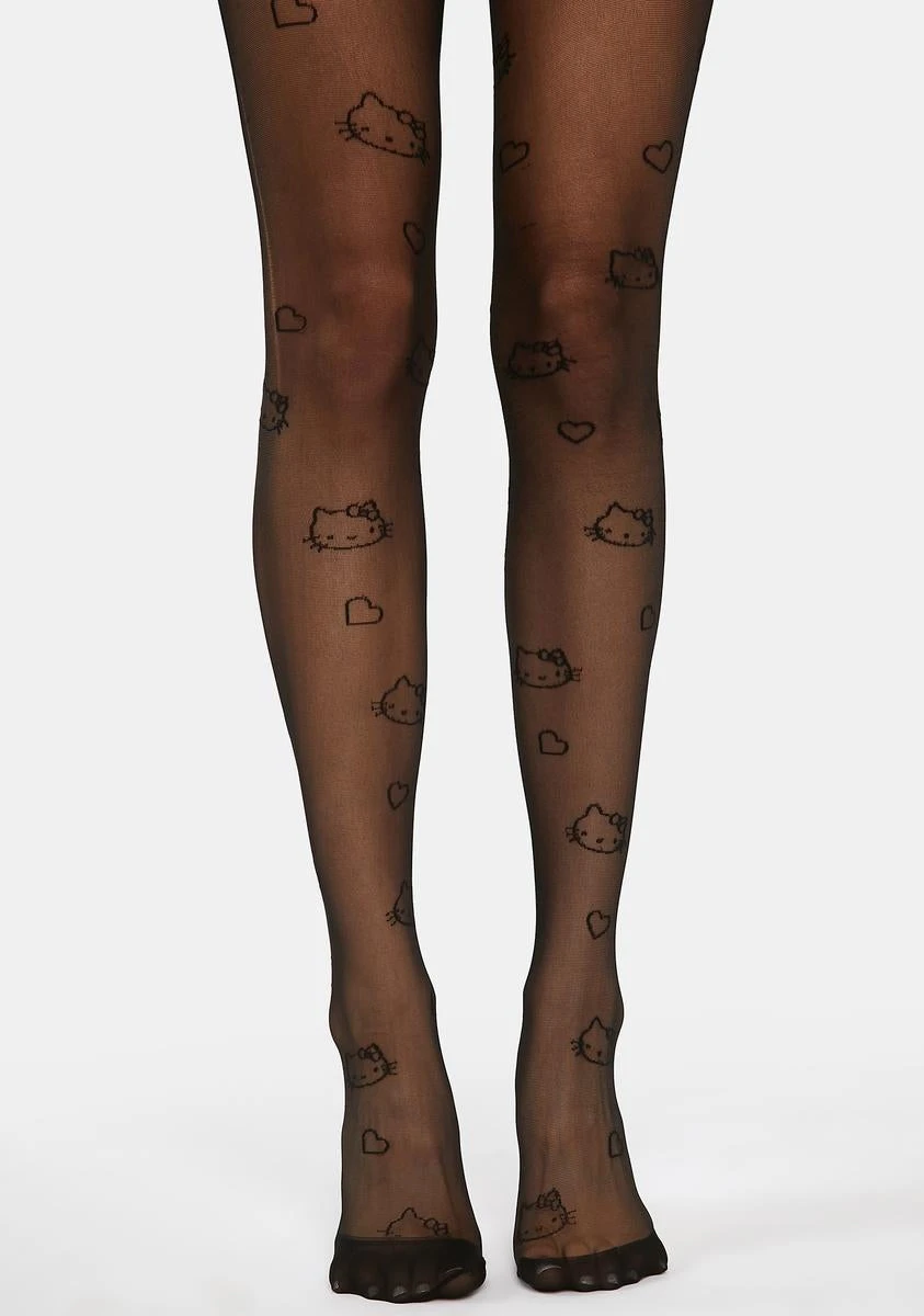 cuz she’s as cute as you. These opaque tights have a sheer construction and an all over Hello Kitty and heart print.