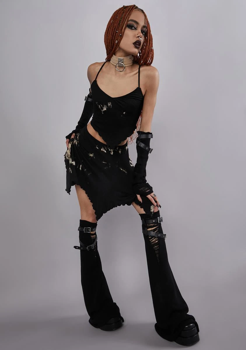 cuz you love to cause some magical mischief. These leg warmers have a knit construction, a distressed design, and vegan leather buckle closures.