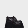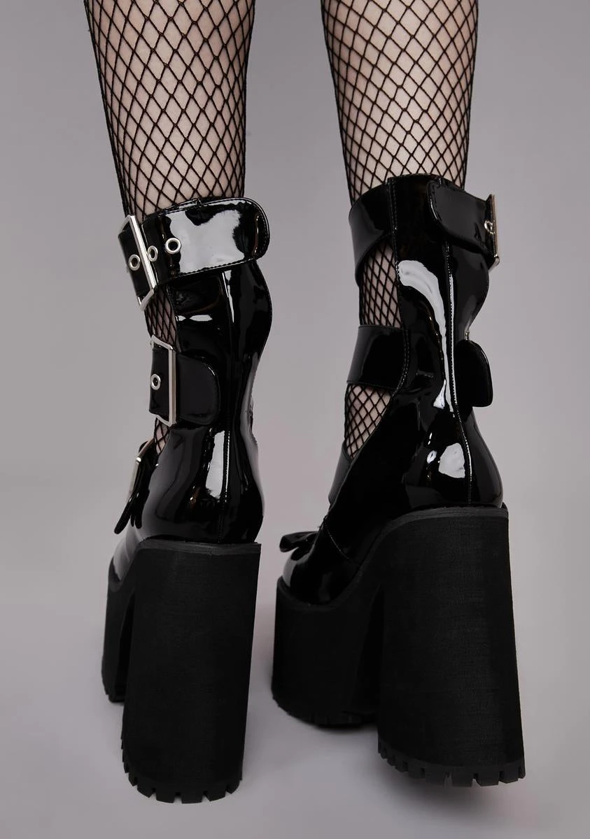 cuz let’s summon a cute demon. These chunky platform mary janes have a patent vegan leather construction, rounded toes, a strappy buckle design, and bow details with pentagram charms.