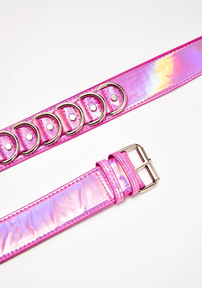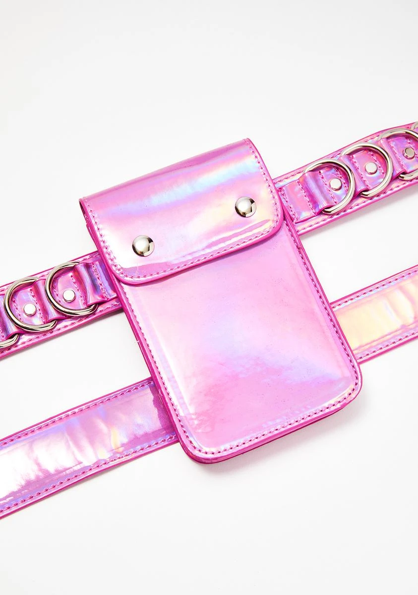 has ya strapped to slay the dance floor bb. Raid the desert from dusk till dawn in this holographic adjustable belted bag that wraps around your leg and has a snap button compartment and D-ring hardware detailing.
